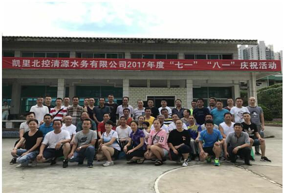 为庆祝建党96周年和建军90周年,凯里北控清源水务有限公司总支于7月28日下午,组织公司全体党员、复退军人及公司部门主管以上干部80余人,在金泉湖水厂举行活动,参加活动人员欢聚一堂,共同回顾了我党成立96周年、建军90周年来,中国共产党带领全国各族人民把半封建半殖民地的旧中国,建设成为举世瞩目、繁荣富强的社会社会主义新中国。