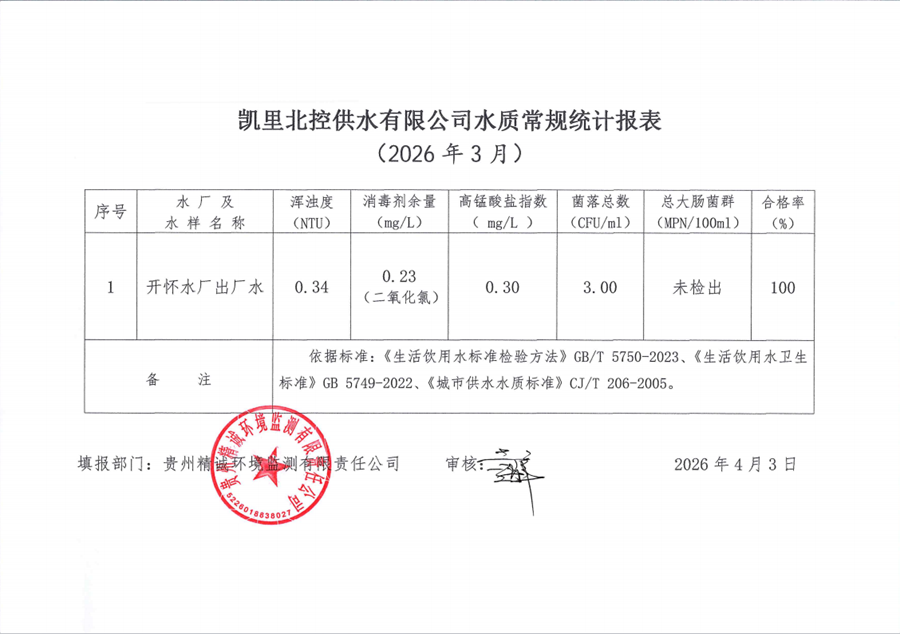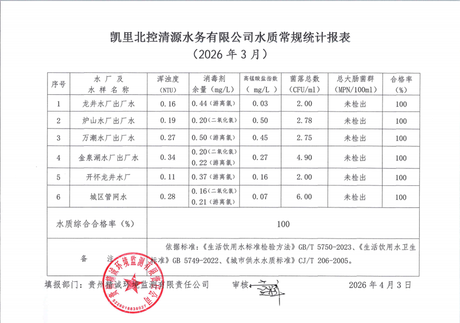 2026年水质检测3月报表-九游入口